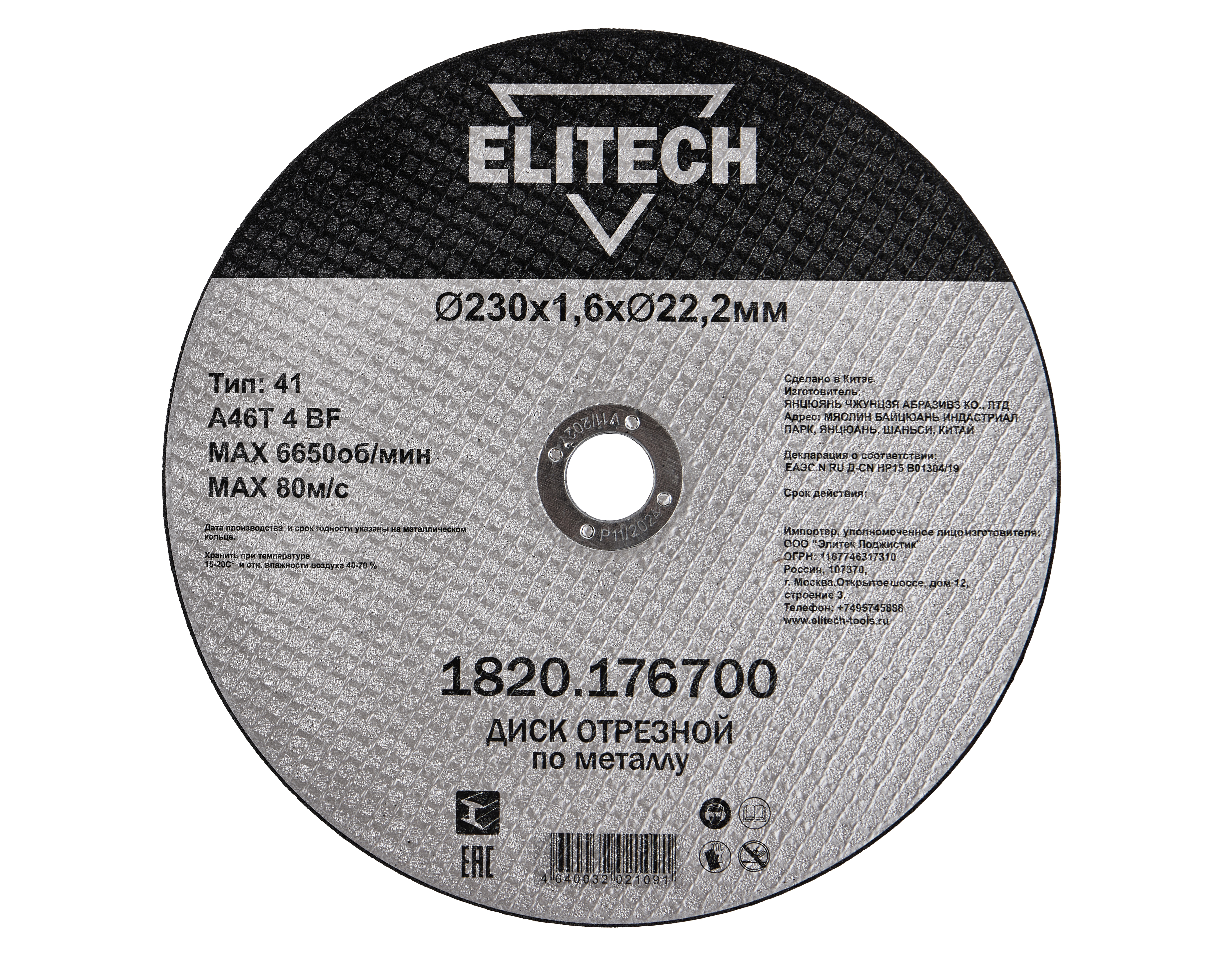 Диск отрезной 230х1,6 сталь — 205602